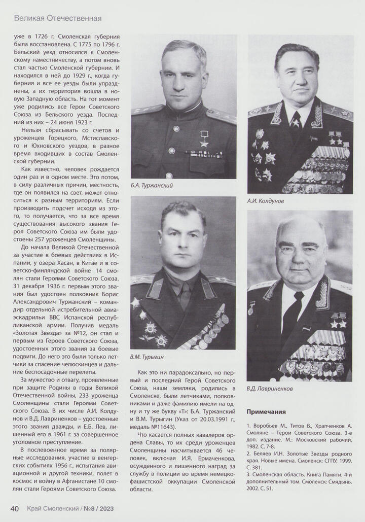 Бортаковский Т. Уроженцы смоленщины — герои Советского Союза. Сколько их на самом деле? / Т. Бортаковский // Край Смоленский.- 2023. - № 8. - С. 39-40.